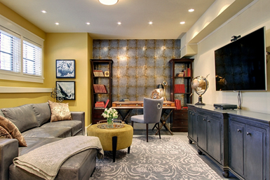 With people working at home more than ever these days, finding a permanent space is a must. A separate room that offers a little privacy for your Zoom meetings is best. A basement office also helps you associate the office with “work” and separate it from your home life. Many studies have shown that natural light enhances productivity, so try to locate it in a room or part of the basement with windows.
